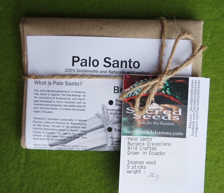 The wood is harvested sustainably in Manabi Province, under the Proyecto de Reforestación de Palo Santo. The sale of the product help fund the reforestation project in Puerto Lopez Country. In Ecuador, it’s against the law to remove or cur down palo santo trees. Only dead wood can be harvested.